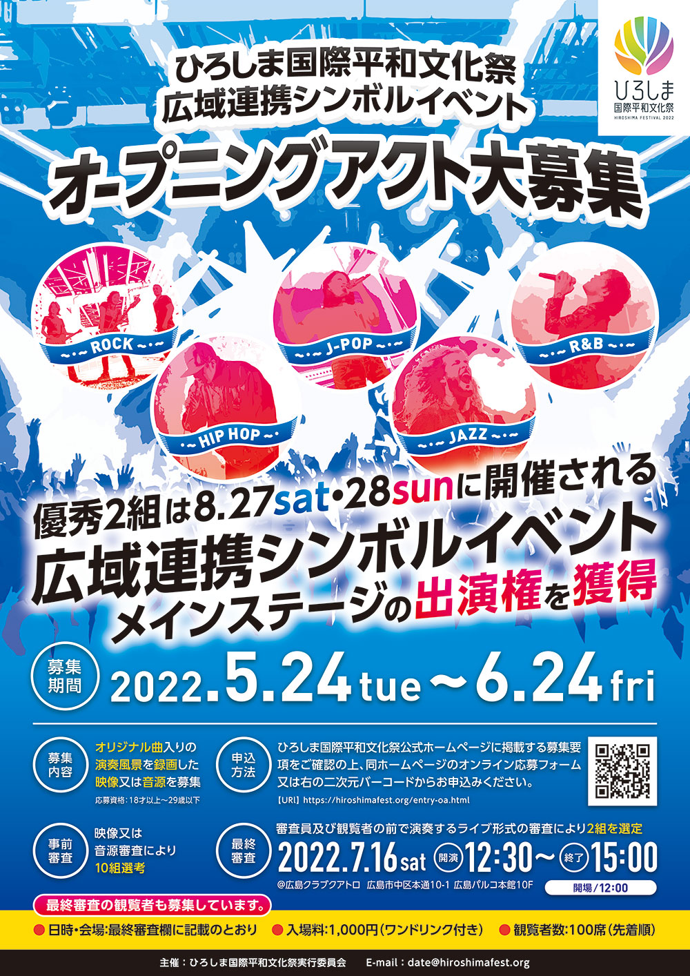 著名なアーティストや広島ゆかりのアーティストによるメインステージ(有料)を始め、広島広域都市圏内の音楽団体のステージ(無料)や圏域内の特産品等の飲食・物販を行うイベント。